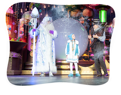 Действие всех шоу разворачивается и на сцене, и в зале. Со зрителями работают актёры в костюмах сказочных героев: ходят между рядами, общаются с детьми. Крупные надувные предметы, наполненные воздухом и гелием, высыпаются с потолка на балкон, а потом улетают в бельэтаж и партер. Профессиональные аниматоры распределяют надувные предметы по залу и контролируют ход игры.