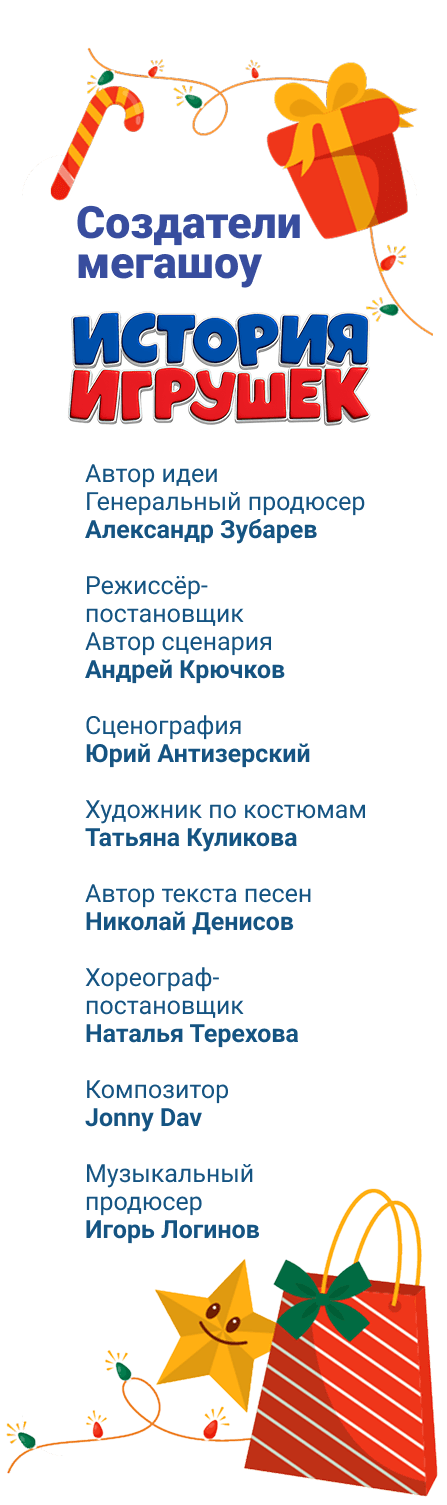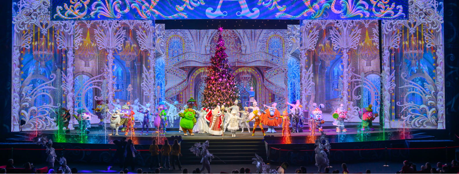 «Новогодняя страна в Крокусе» (2019/20). Юбилейное мегашоу «День рождения Деда Мороза» (Крокус Сити Холл), бесплатное шоу «Кругосветное путешествие» в Парке аттракционов и развлечений.